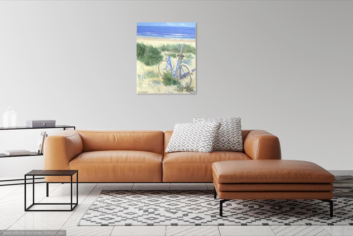 Vélo bleu sur la dune d'Henri Deuil - Peinture à l'huile sur toile - 15F (65 x 54 cm)